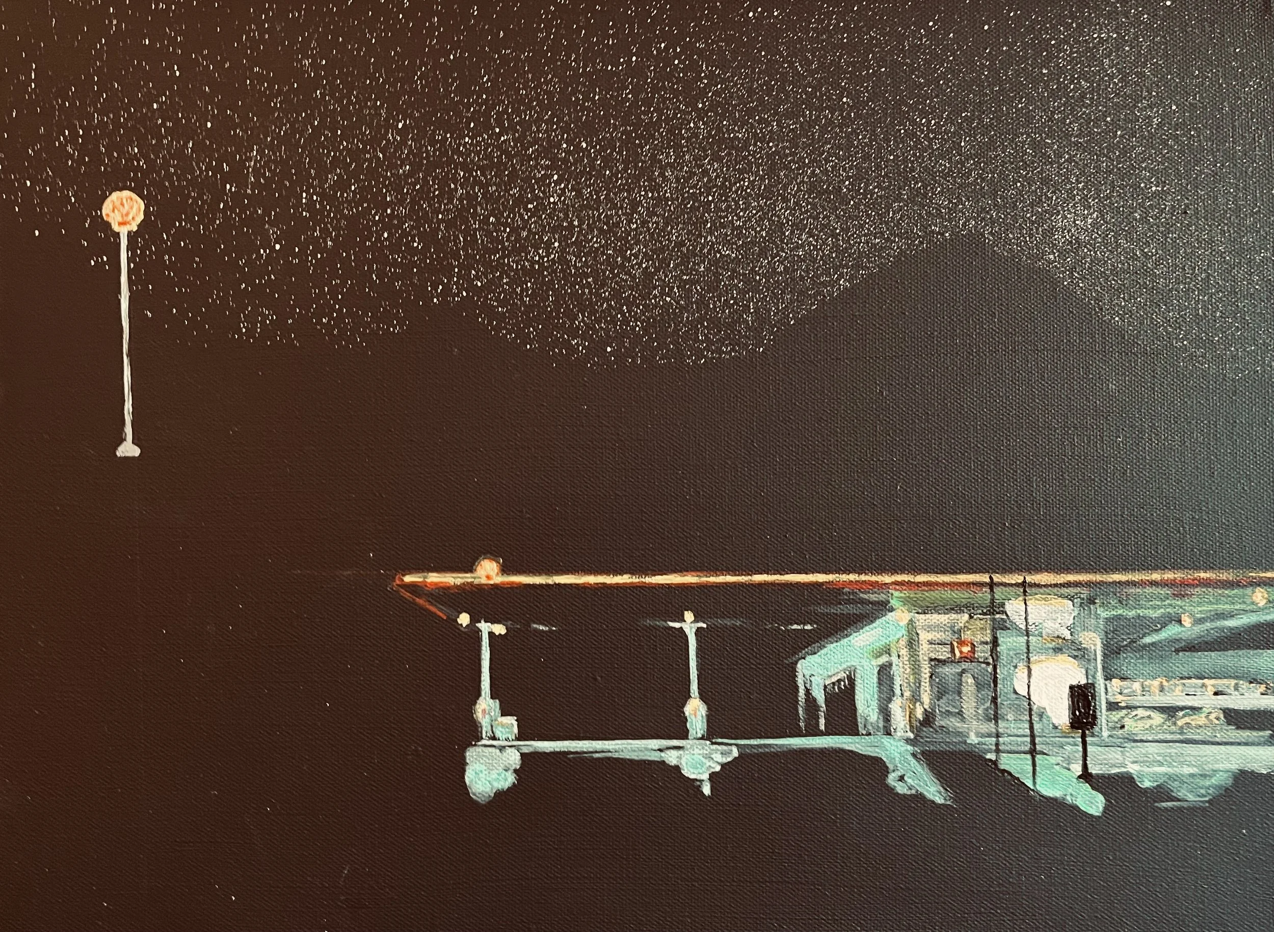 All works are acrylic on canvas or pencil sketches. He also builds live edge furniture and makes sea glass jewelry.